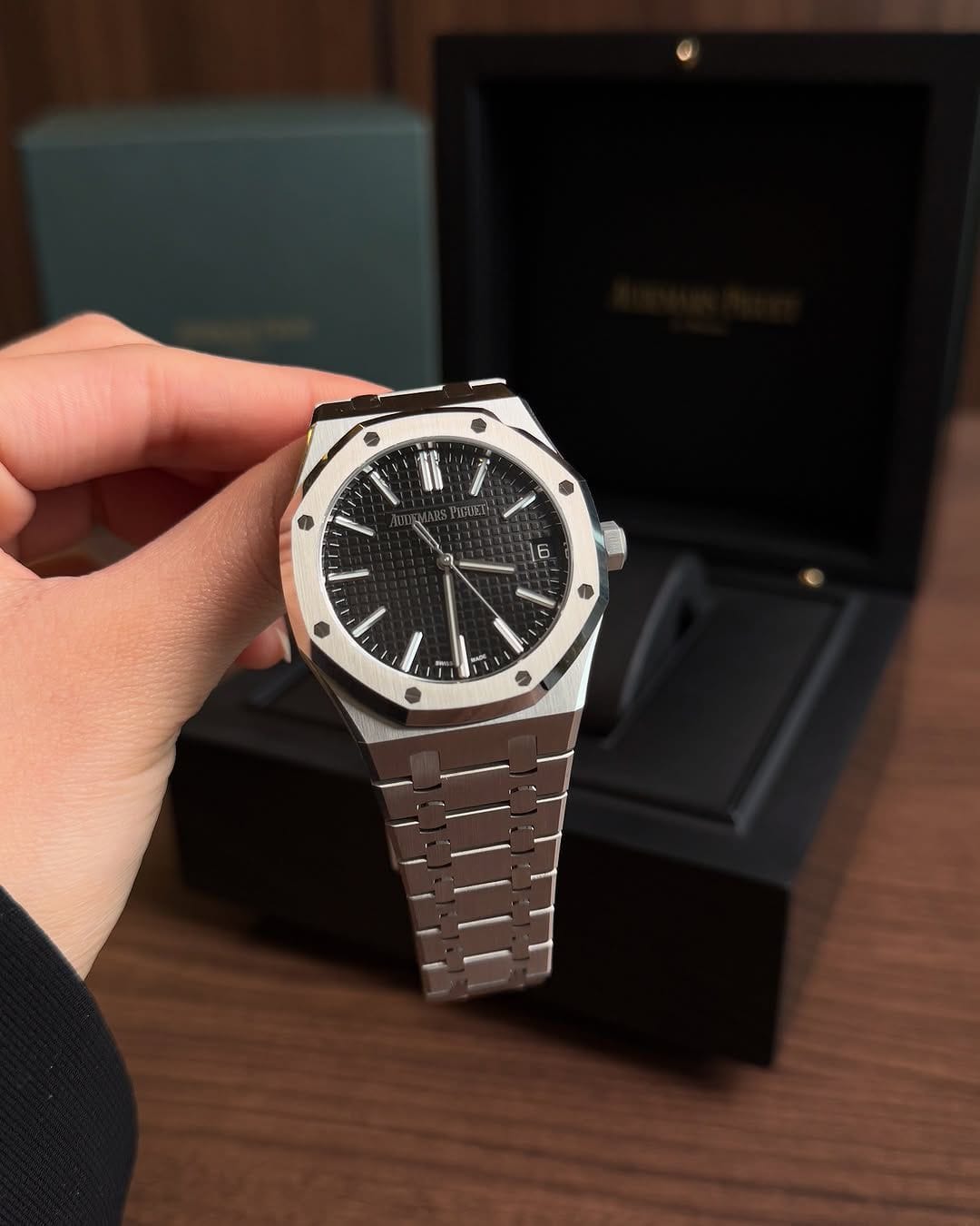 Audemars Piguet ROYAL OAK 7AAA Original ModelMen’s Premium Watch Stainless Steel Black Dial Silver Bezel Edition