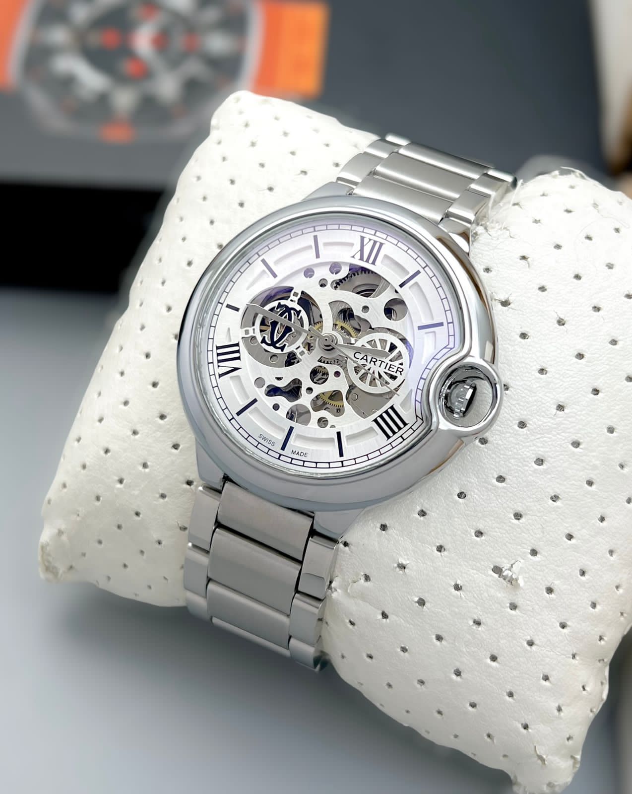 With its heavy metal belt, full stainless-steel finish options, and 24-hour working analog display, the Cartier 7AA Premium Automatic, Men’s Watch 43mm is ideal for daily wear, formal occasions, and confident wrist presence. This is not just a watch—it’s a statement of luxury and precision.