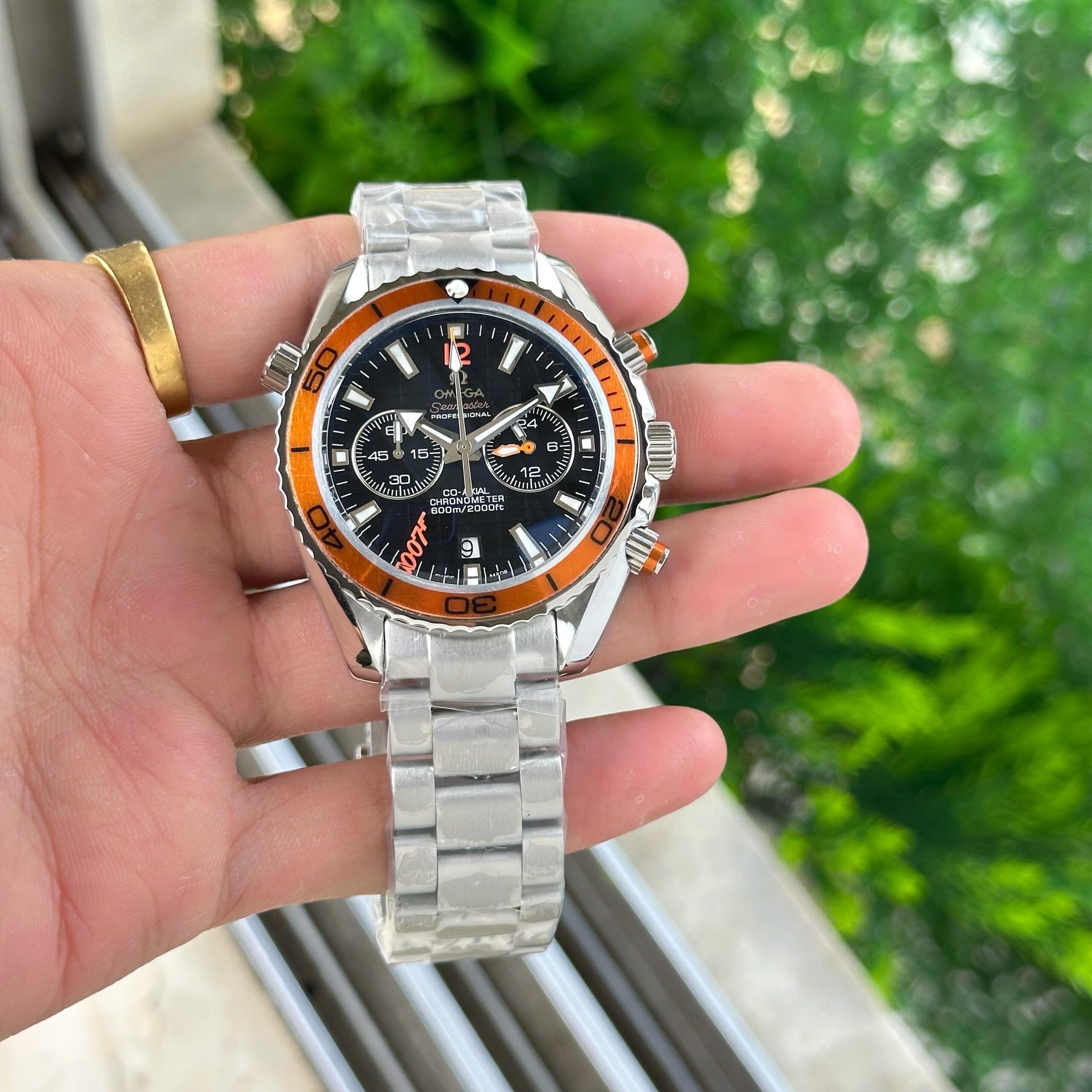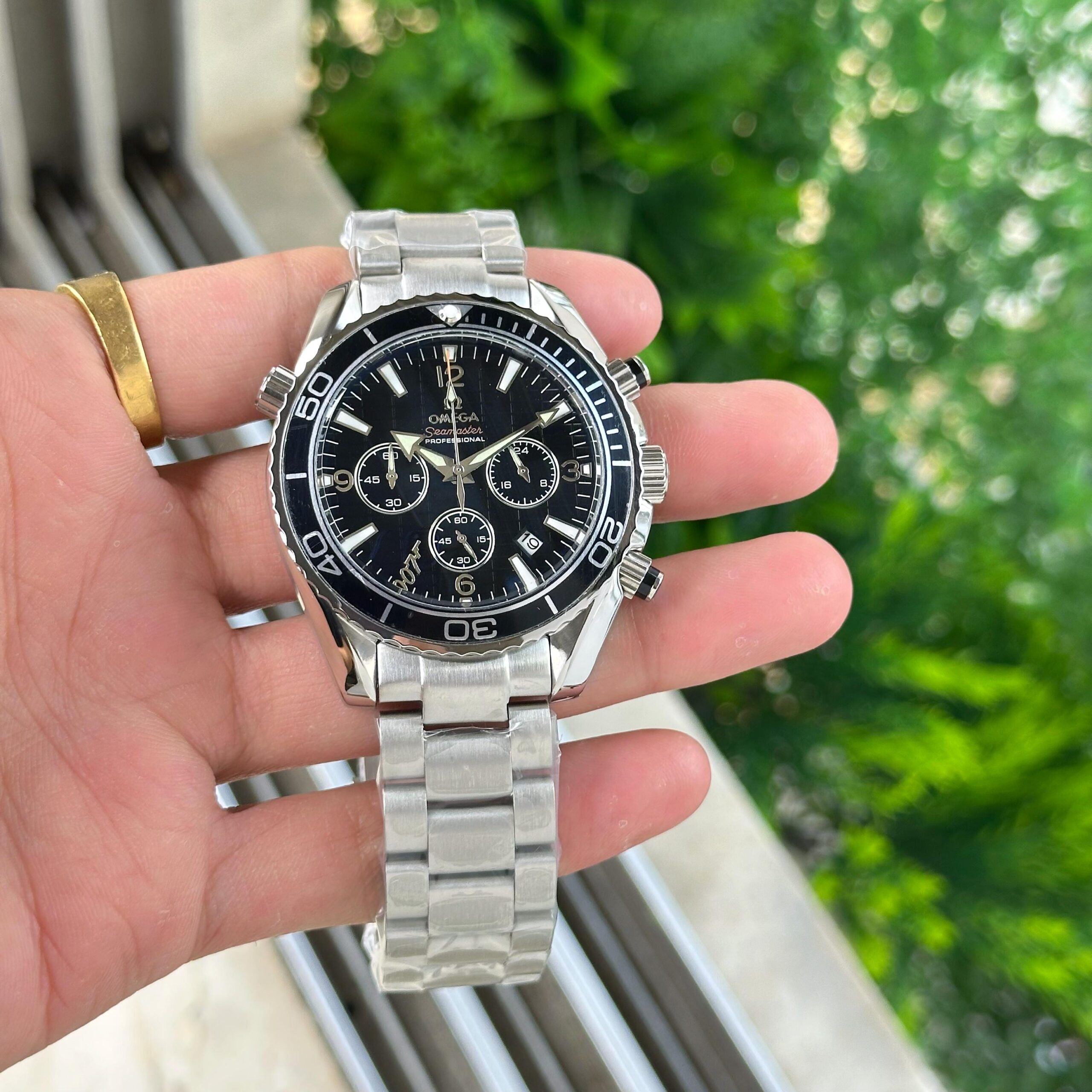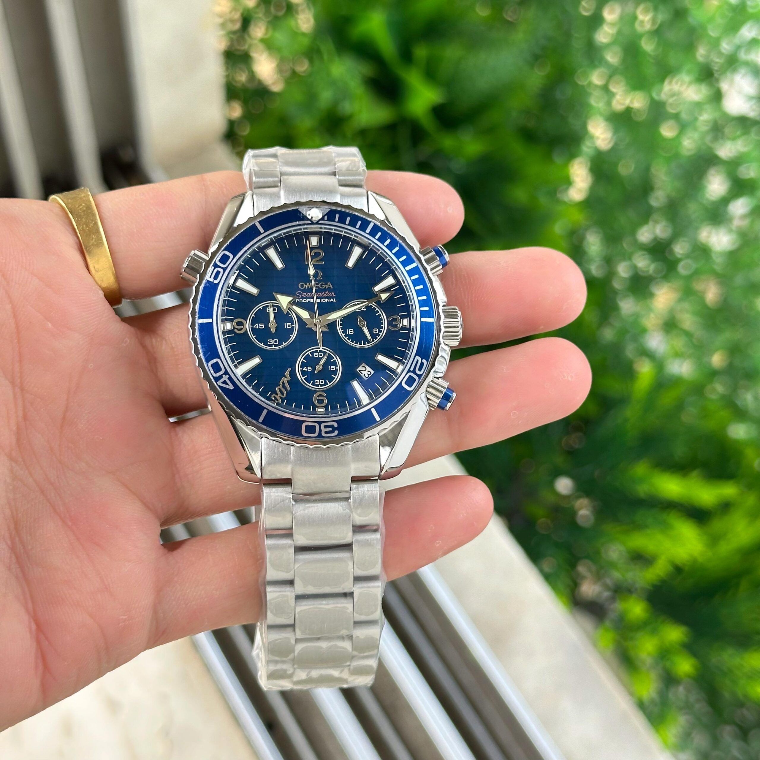 Omega Seamaster 7AA, Co-Axial Chronometer is crafted for men who prefer a bold, premium and performance-driven timepiece. This Omega Seamaster 7AA, Co-Axial watch features a strong stainless steel body with a luxury diver-style bezel and a high-contrast dial for easy readability. The chronograph function with working sub-dials adds both utility and sporty appeal, while the domed crystal glass enhances durability and clarity. Designed for daily wear, office wear and premium casual styling, this watch delivers a powerful wrist presence with long-lasting shine and solid build quality.