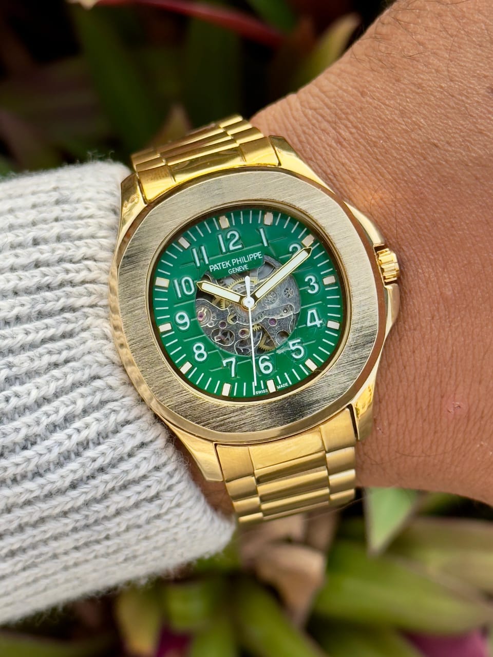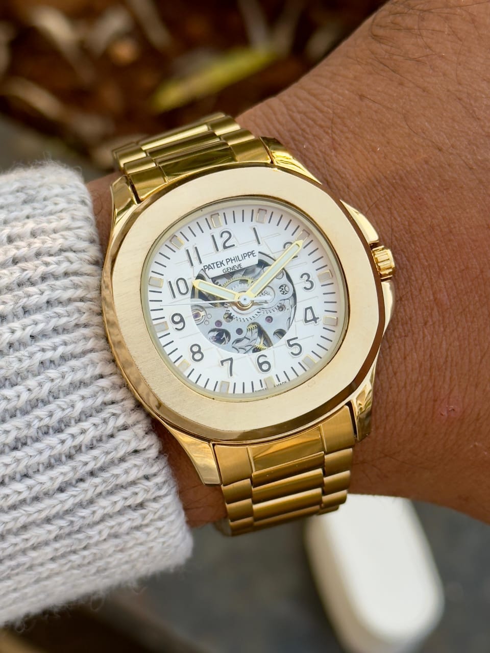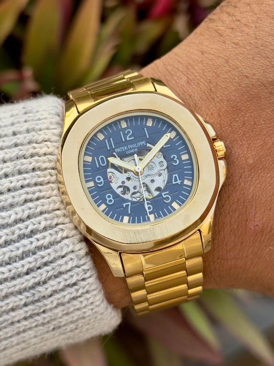 Patek Philippe automatic Men’s Premium Watch With Gold Finishing timepiece shines with a bold luxury look, featuring a striking open-heart dial that immediately draws attention. Crafted with premium detailing and automatic machinery, it blends mechanical beauty with an elegant modern finish.