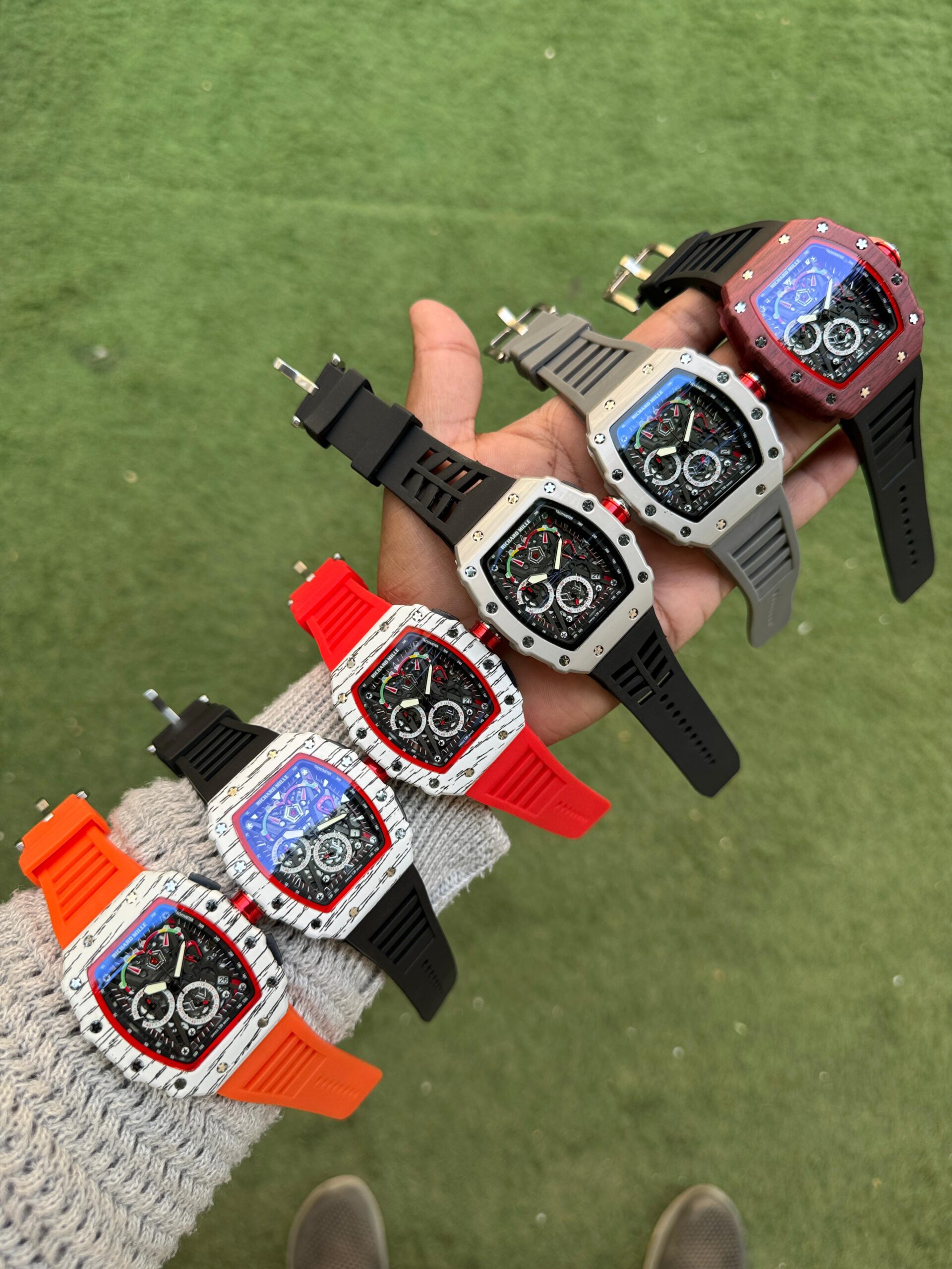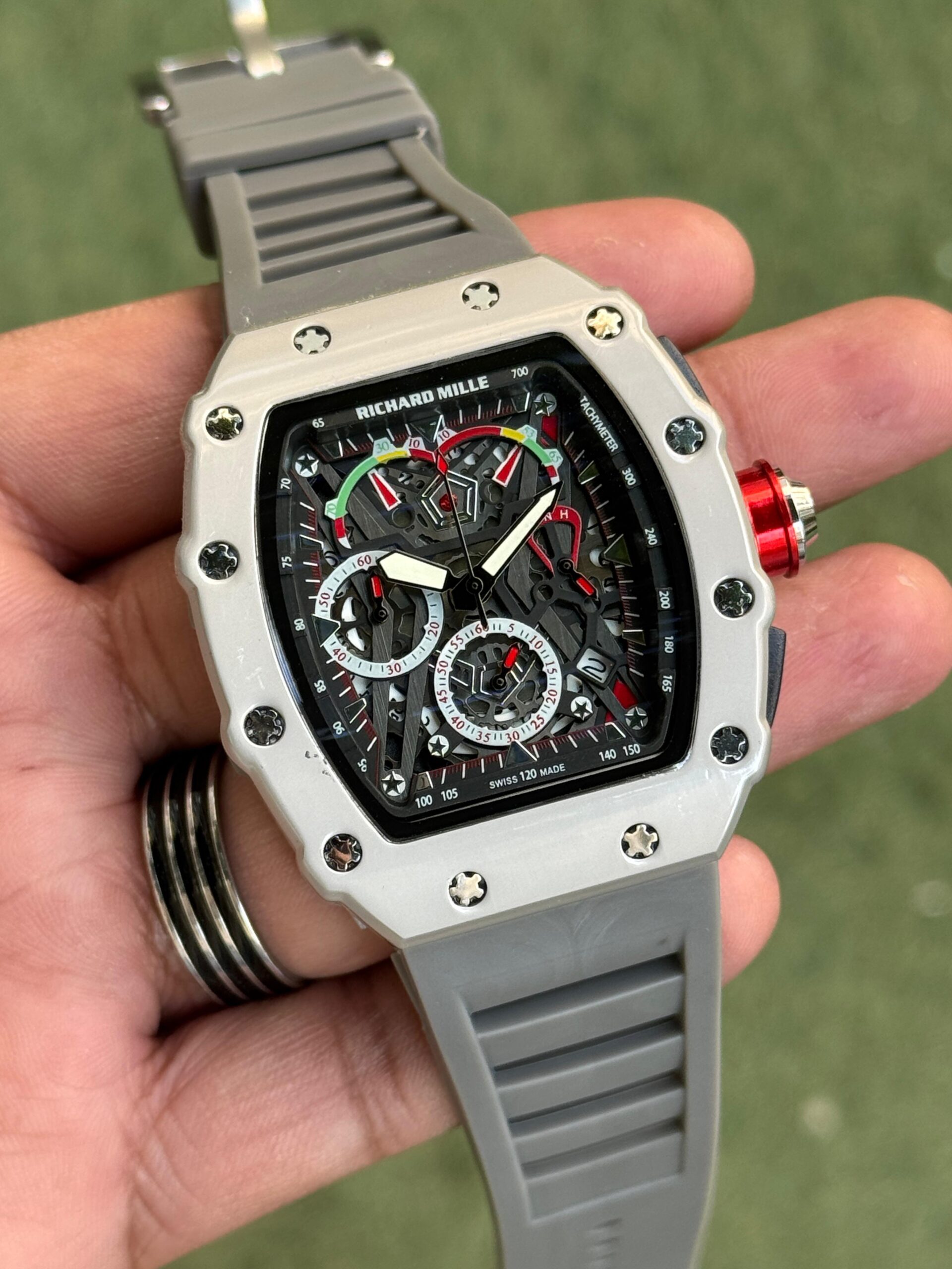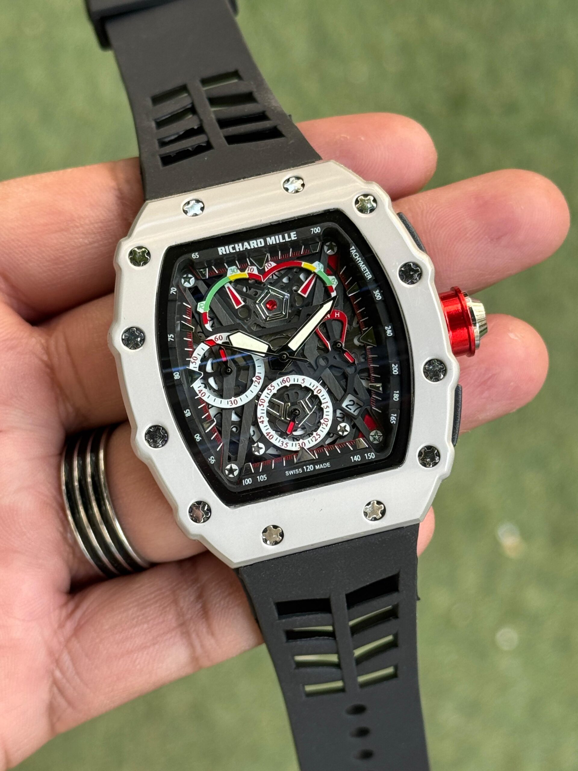The durable rubber strap offers maximum comfort and flexibility, making the watch ideal for daily wear and active lifestyle. With its bold racing look, skeleton dial and high-tech design language, the Richard Mille RM 50-03 McLaren Chronograph stands out as a powerful luxury statement watch.