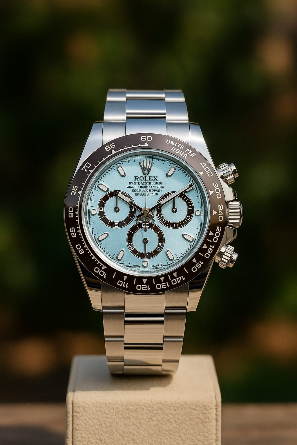 Rolex Cosmograph Daytona 7AA Automatic Ice Blue Men’s Premium Watch Platinum Brown Cerachrom Bezel Chronograph Edition