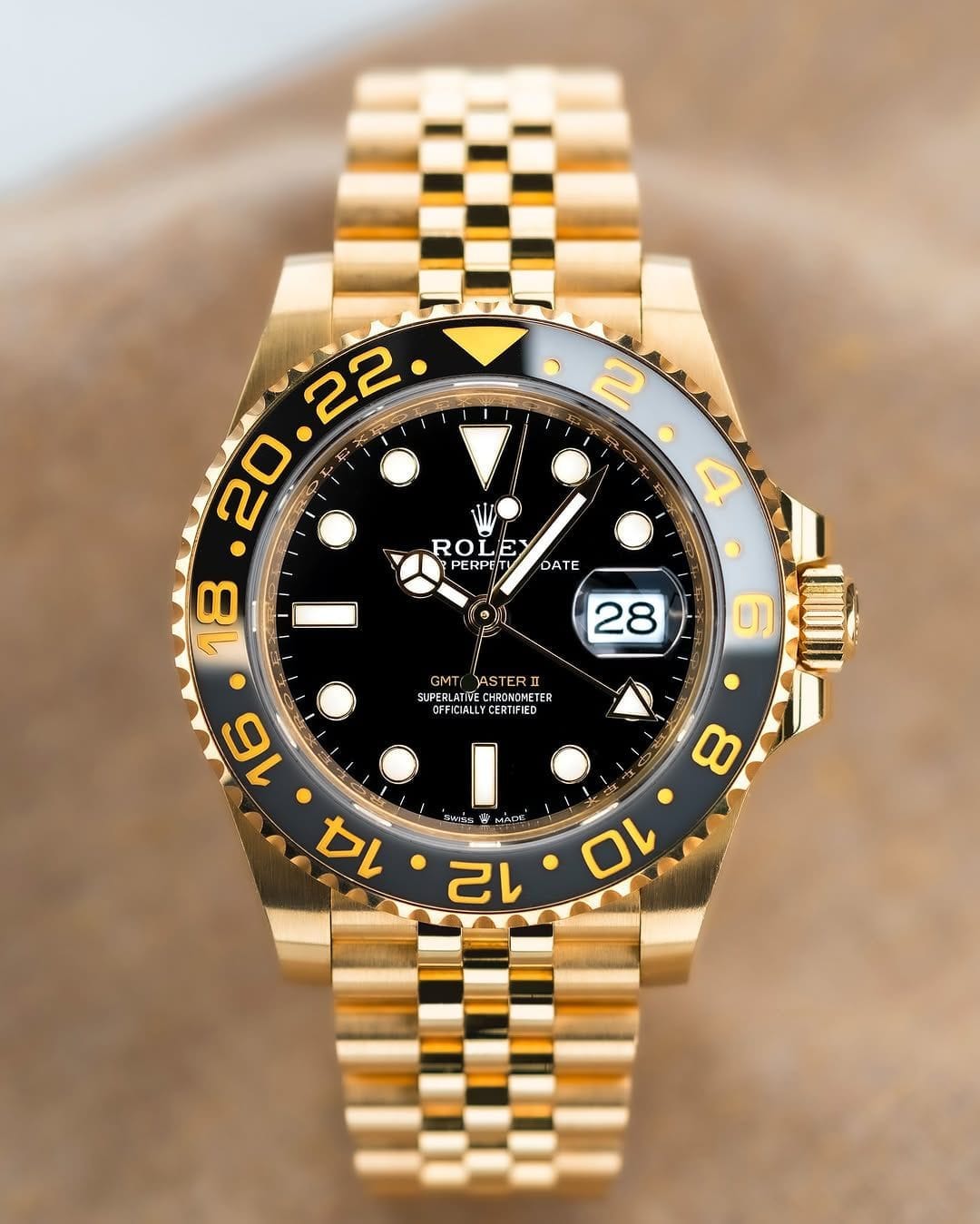 Rolex GMT Master 2023 is A masterpiece designed for men who value class, power, and precision.Latest 5-Link Stainless Steel BraceletBold 41mm Dial with Ceramic Black Bezel 100% Trusted Japanese Automatic Movement Striking tool for every occasionPremium 7AA Collection | Model: Rolex GMT II GOLD Comes packed in a Rolex brand box | Free shipping | Same-day dispatch 🚚(Original box available at extra cost)A masterpiece designed for men who value class, power, and precision.