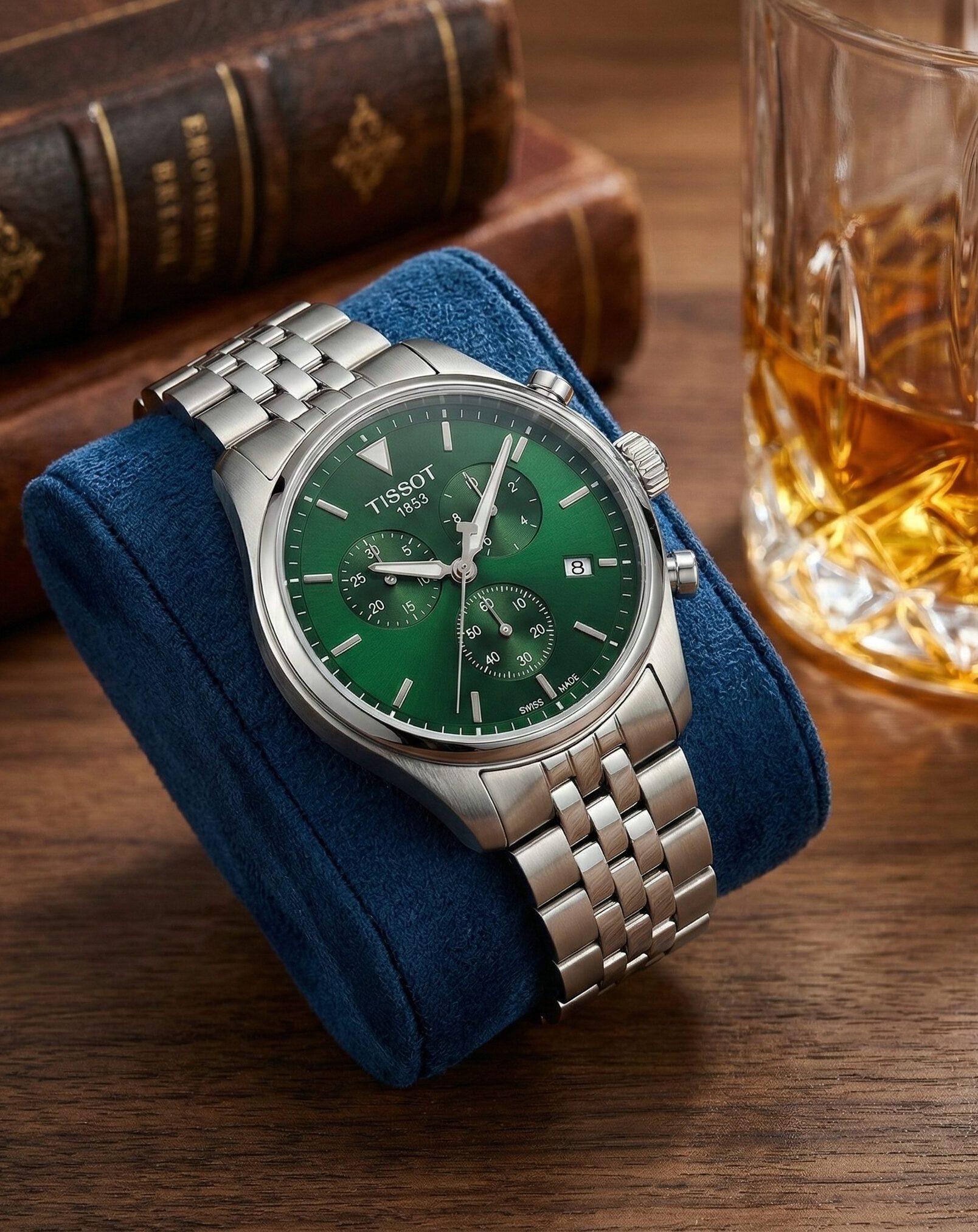 A premium upgrade to everyday elegance — the Tissot Gentleman, combines a bold green dial with a refined 5-link stainless-steel strap. Designed for men who appreciate class, precision and durability, this model offers best-in-class chronograph performance with a sophisticated luxury finish.