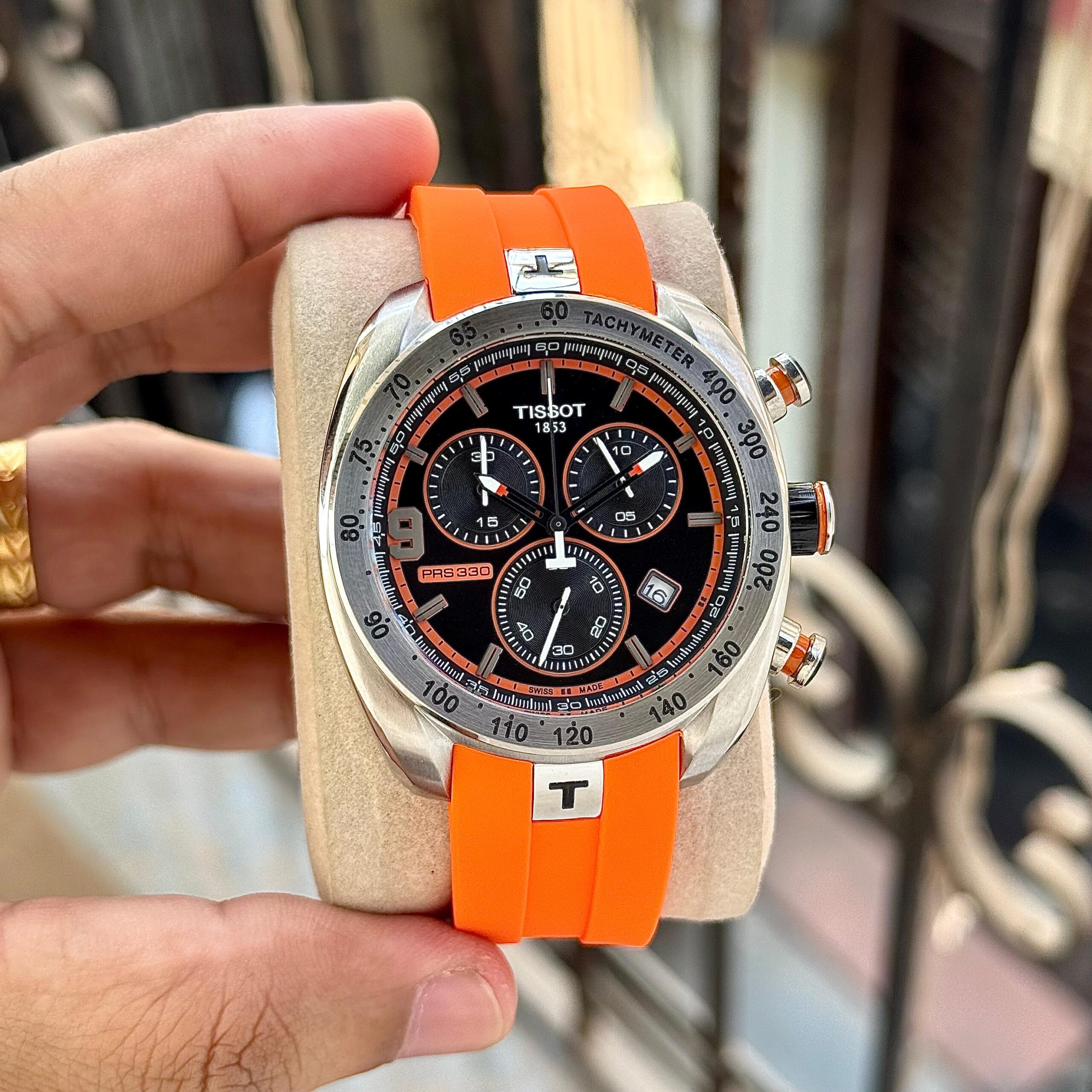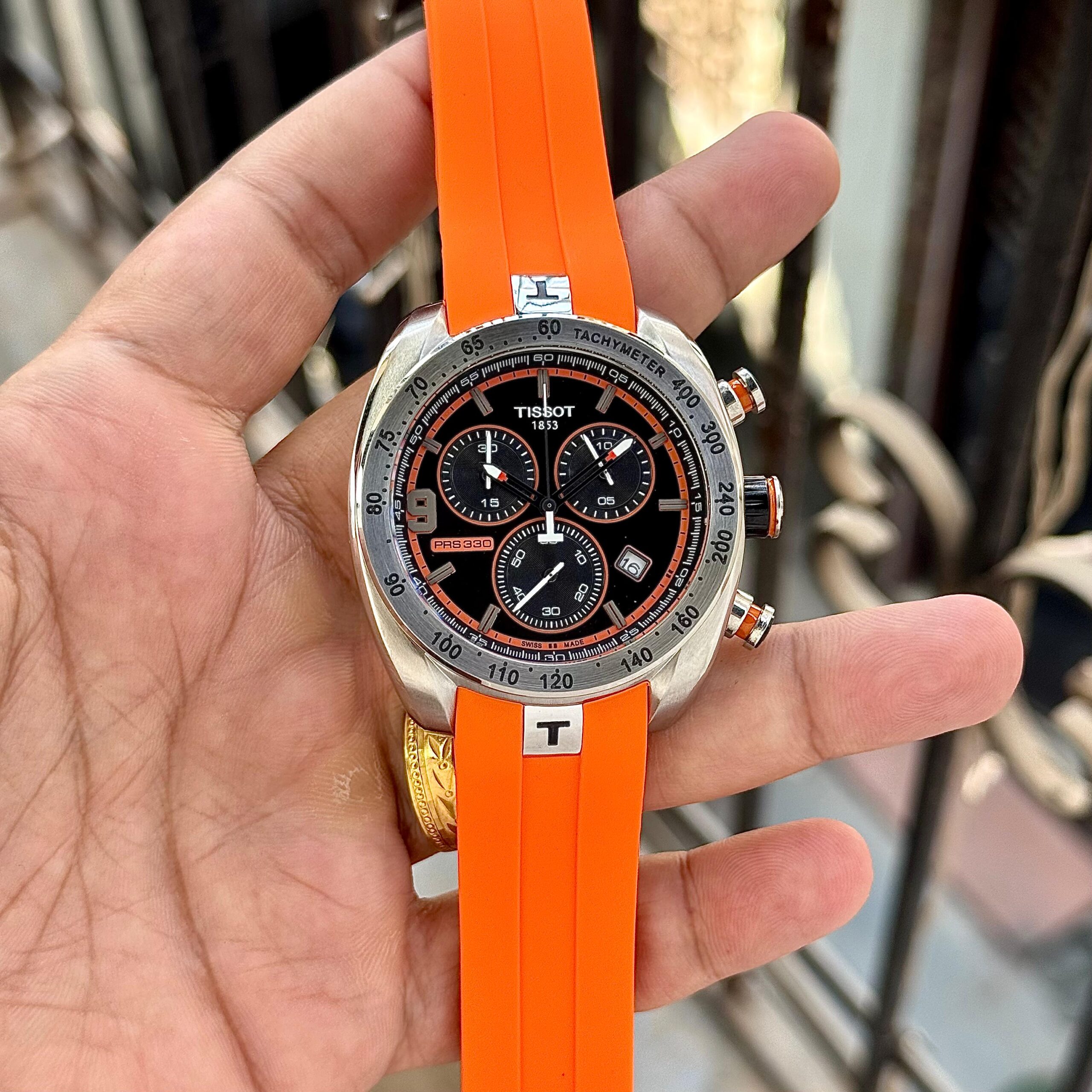 Tissot PRS 330 Tony Parker 7AA premium chronograph watch is a bold sports-inspired timepiece designed for men who love performance and style. With its striking black dial, orange accents and tachymeter bezel, this watch delivers a powerful racing look combined with precision chronograph functionality.
