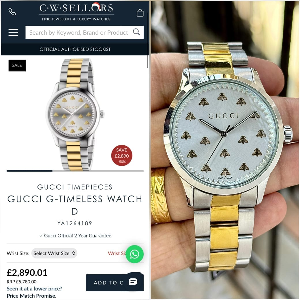 The Gucci G-Timeless timeless brings elegance, luxury, and iconic detailing together in one premium fashion timepiece. Its silver textured dial paired with gold bee markers creates a standout design that suits both men and women who love statement luxury.