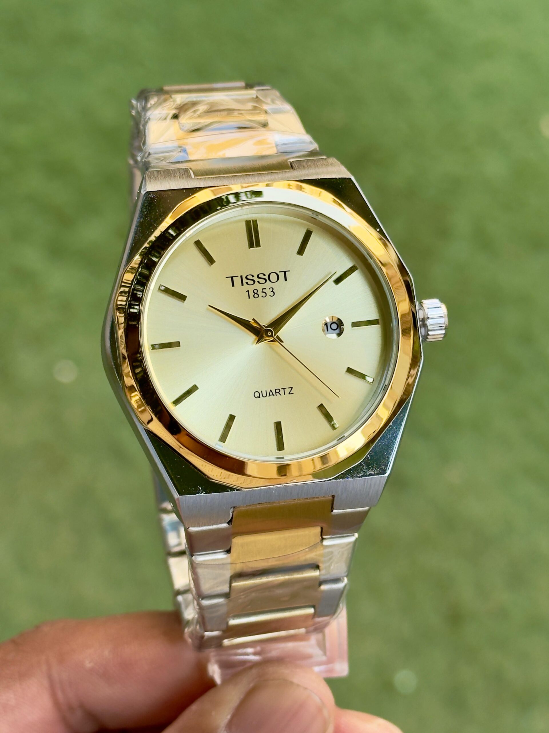 Tissot PRX Quartz watch represents a timeless combination of modern minimalism and classic Swiss watch aesthetics. The watch features a beautifully finished sunburst dial that reflects light elegantly, creating a sophisticated and premium appearance. Clean index markers and slim hands maintain the minimalist design while ensuring excellent readability. A polished gold-tone bezel adds a luxurious contrast to the stainless steel case and bracelet, giving the watch a distinctive and refined look.
