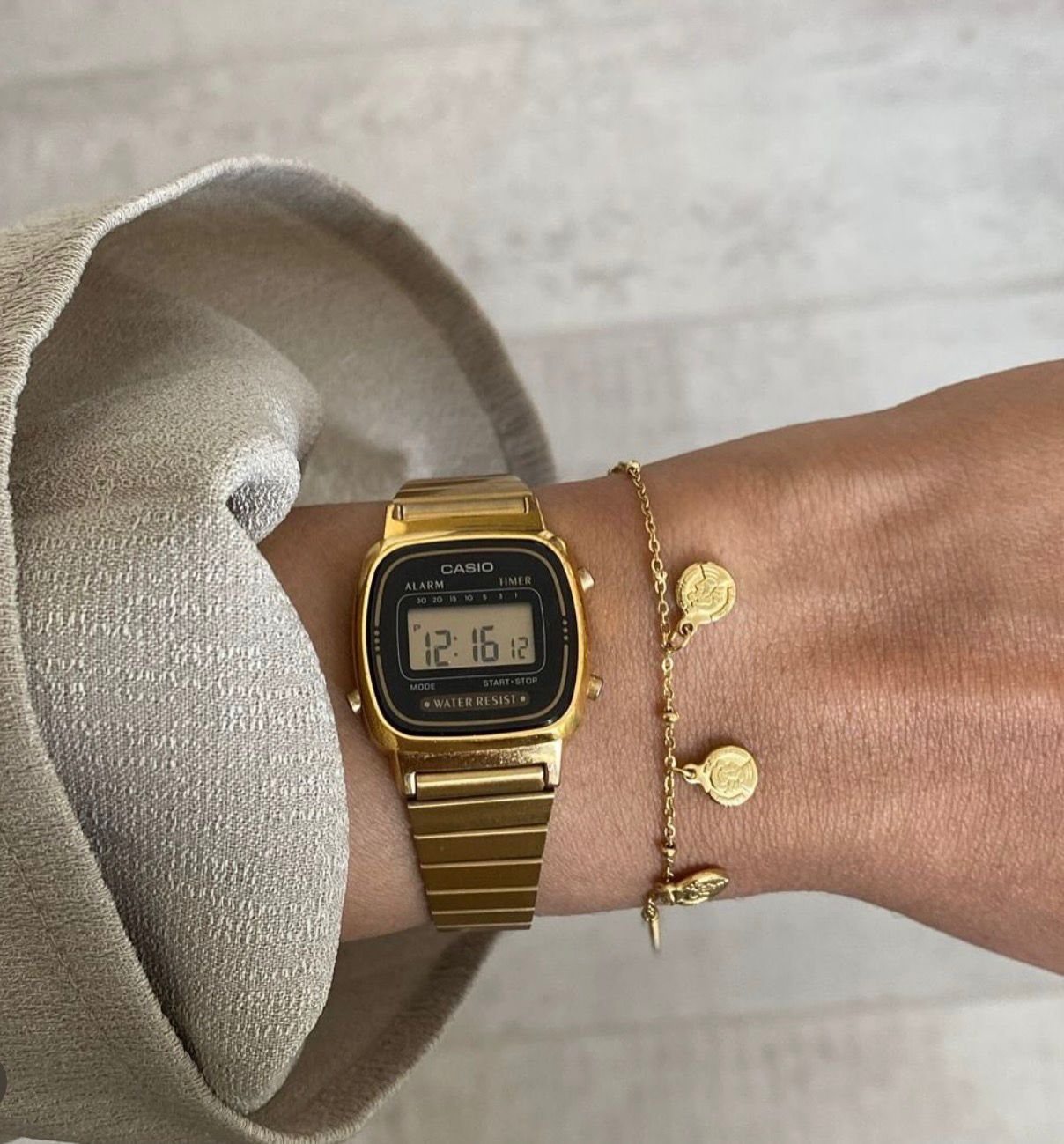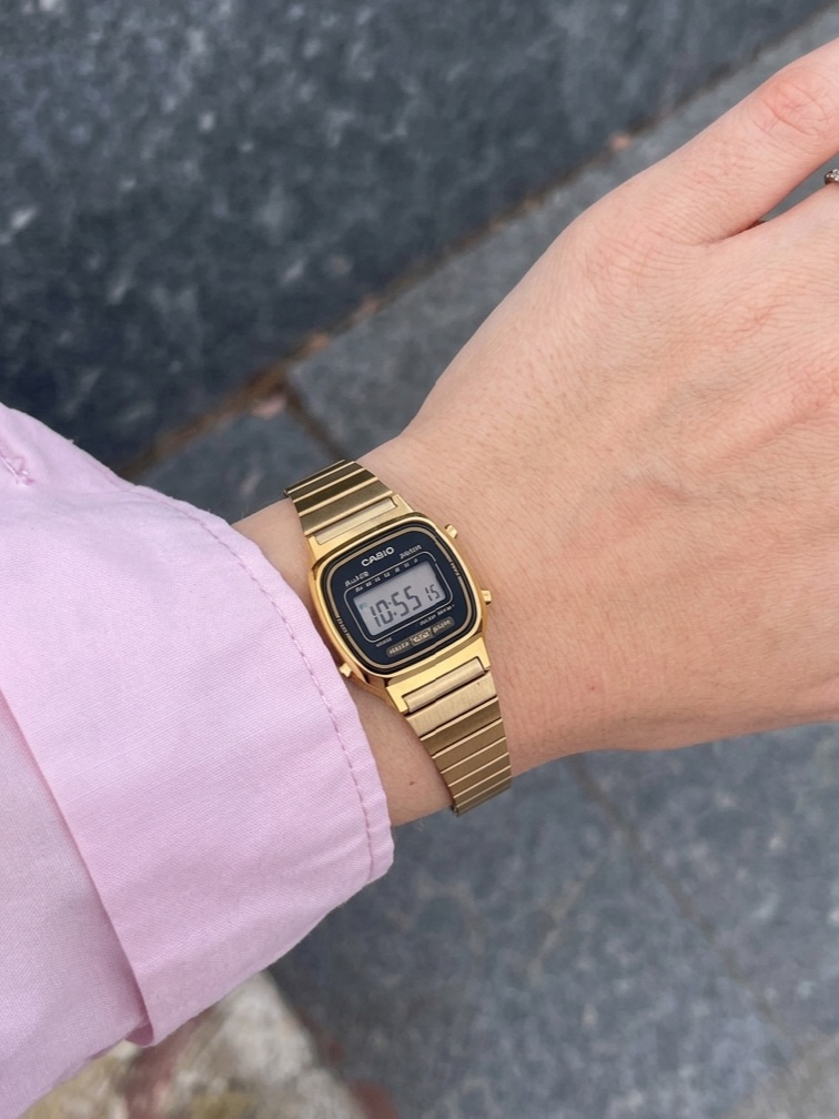 Casio Vintage LA670WGA women digital watch is a perfect blend of retro style and modern functionality. Designed for girls who love minimal yet stylish accessories, this watch comes with a classic digital display, gold metal strap, and multiple useful features like alarm, stopwatch, and date display. Lightweight, comfortable, and highly durable — perfect for daily wear.