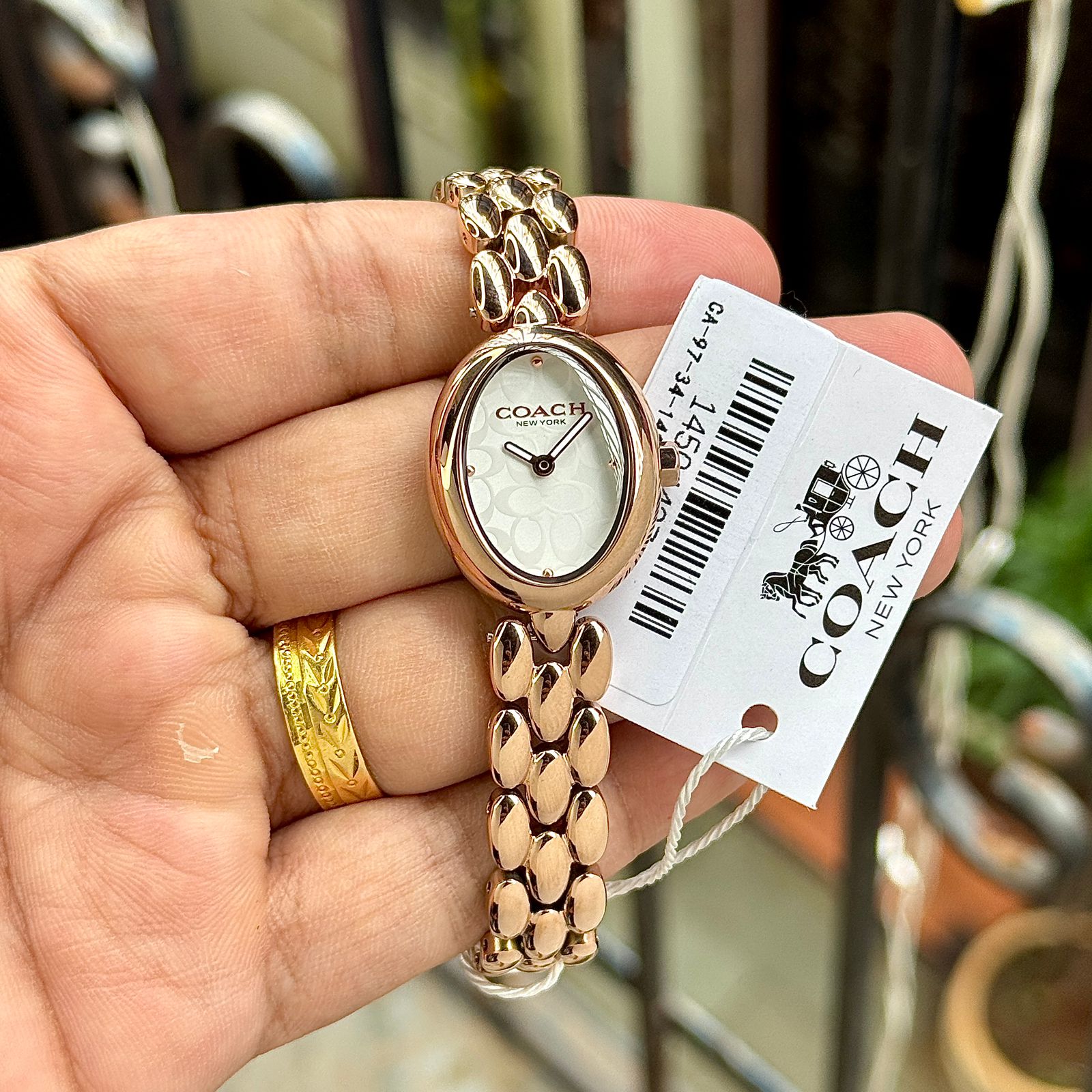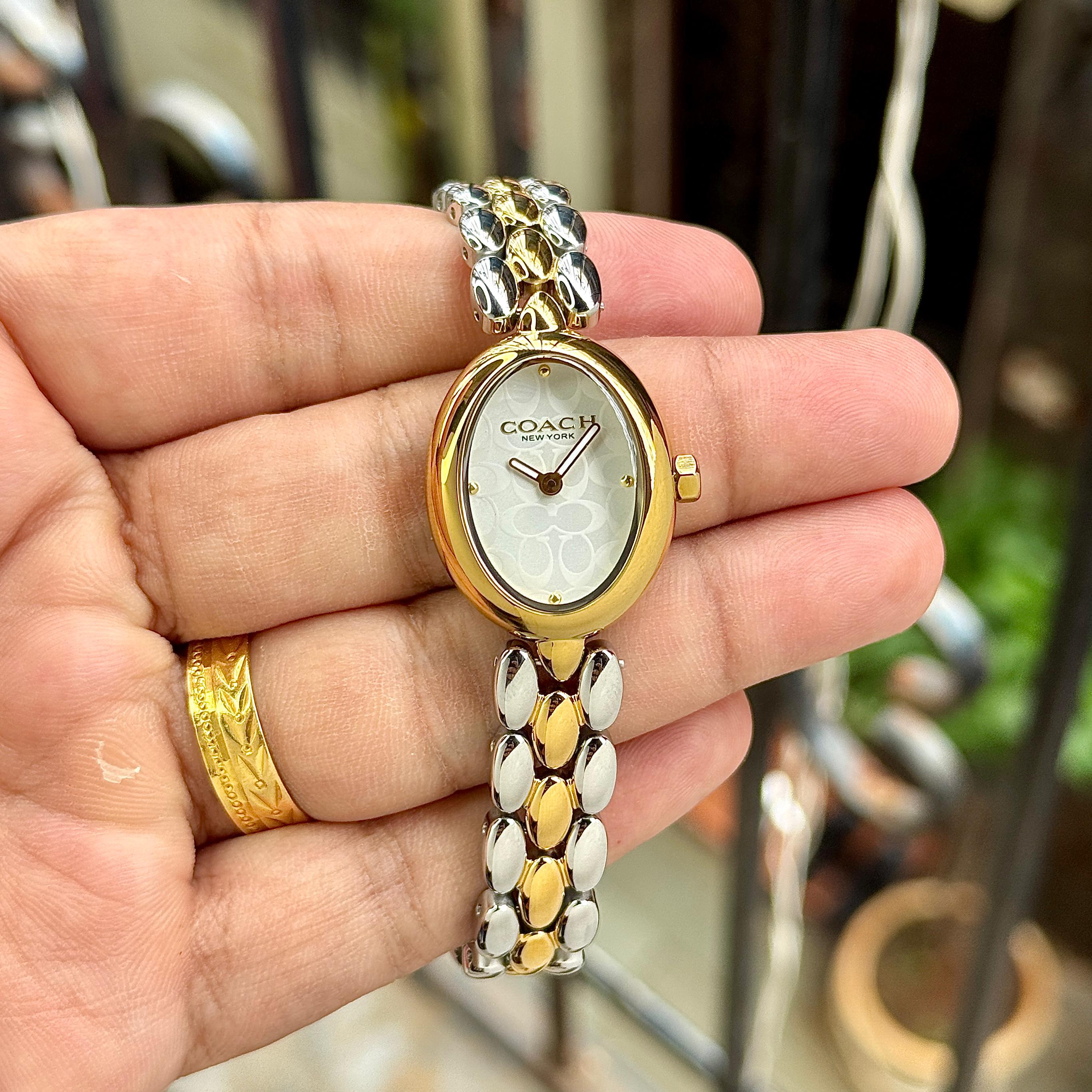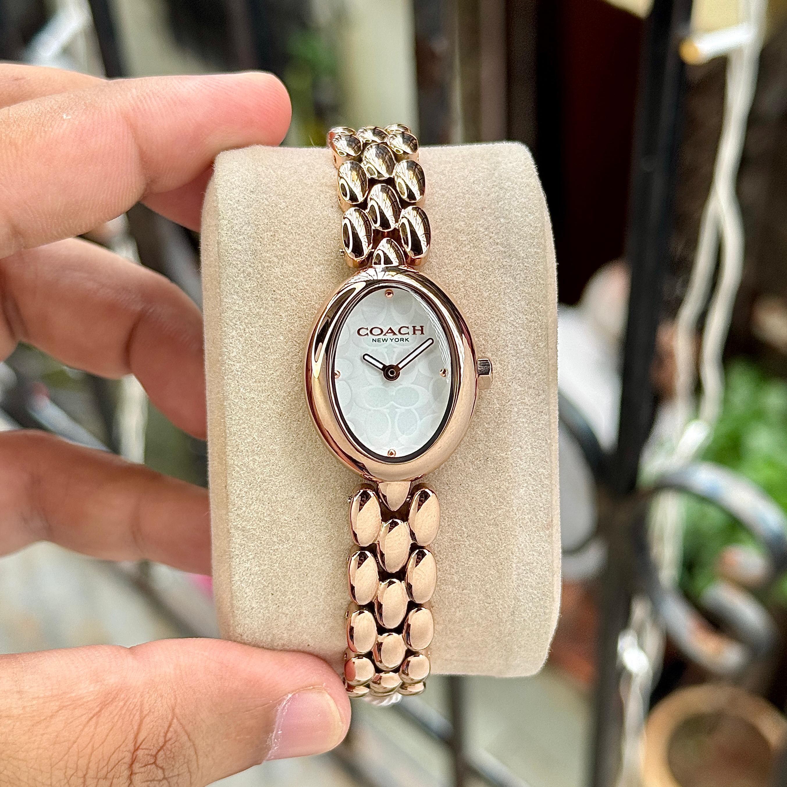 Coach Sammy is A perfect blend of feminine elegance and modern luxury, the Coach Sammy Rose Gold watch is designed to enhance your everyday style. The oval dial with subtle signature pattern gives it a classy and minimal look, while the rose gold bracelet adds a premium and fashionable touch. Lightweight, stylish and comfortable, this watch is ideal for daily wear as well as special occasions.